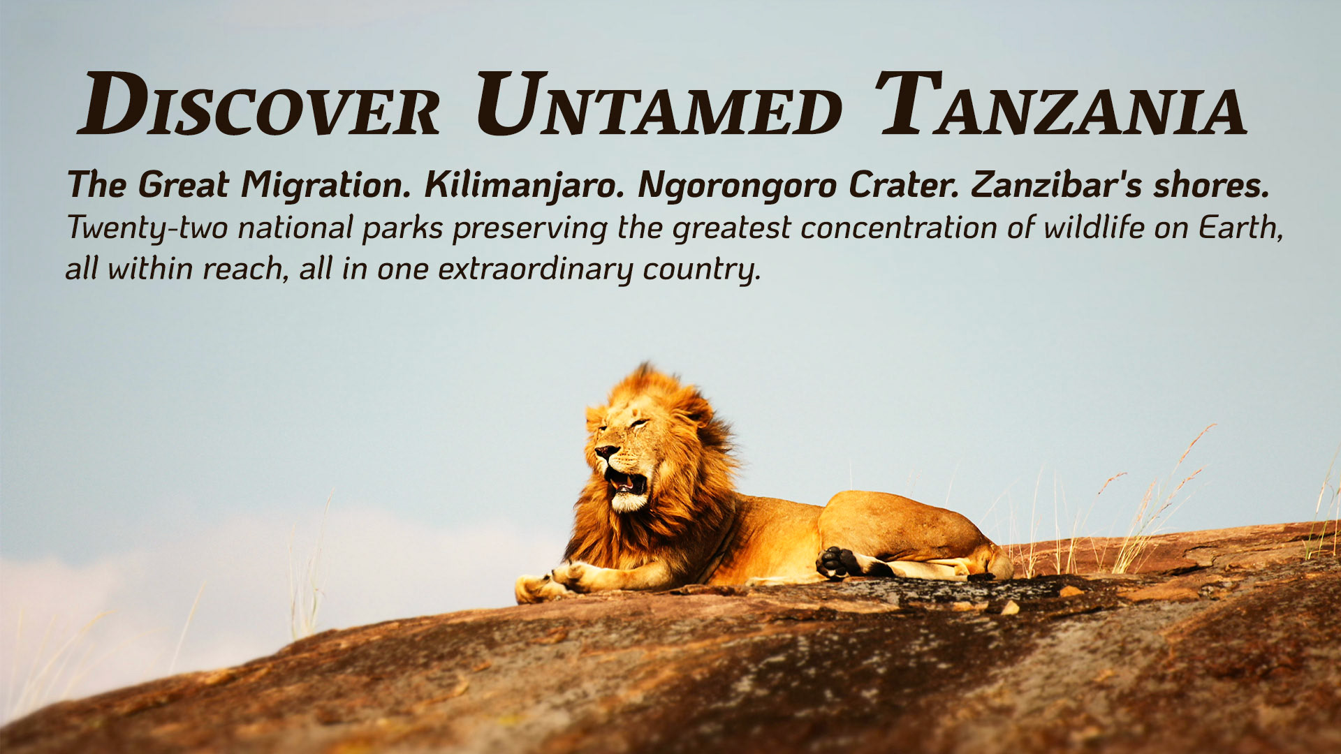 Project Overview: Multi-page brochure design showcasing Tanzania's iconic wildlife destinations including the Serengeti, Ngorongoro Crater, and Tarangire National Park.